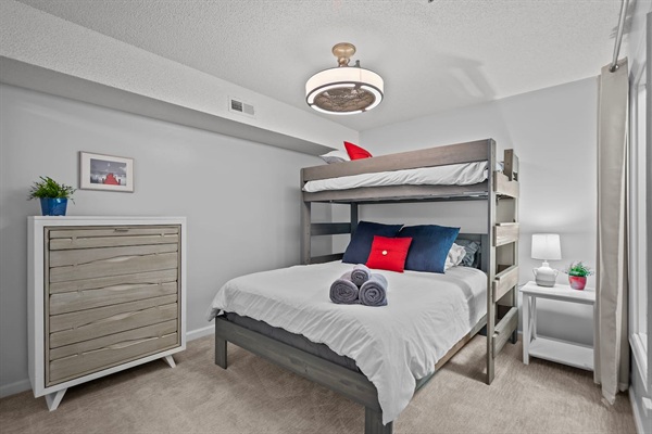 Bedroom 2 with single over queen size bunk beds